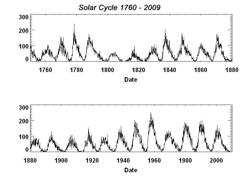Solar cycle from 1760 - 2009